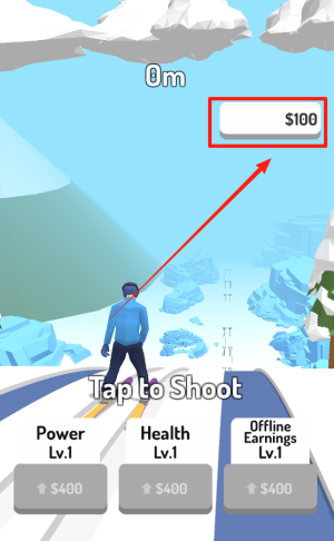 3、屏幕上方展示获得的金币数量,积累足够数量可解锁新角色与装备。