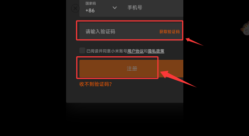 3、将获取的验证码填写,然后点击注册即可。