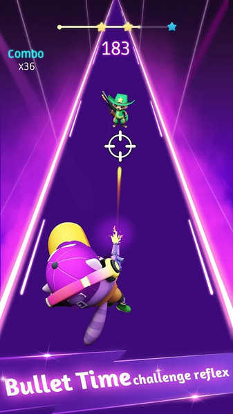 2、多元玩法融合:将音乐节奏与跑酷、射击完美结合,考验手速与反应能力,带来别具一格的复合式游戏体验。