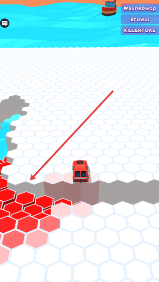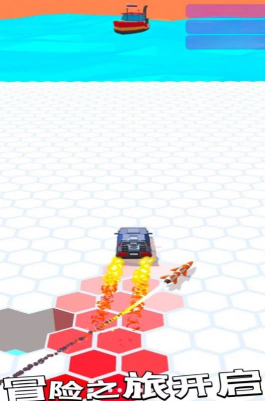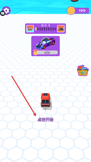 3、按箭头指示方向,操控红色汽车驶向红色六边形区域,完成游戏任务。