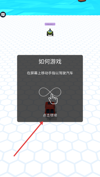 2、阅读“如何游戏”提示,了解在屏幕上移动手指可驾驶汽车,然后点击“点击继续”。
