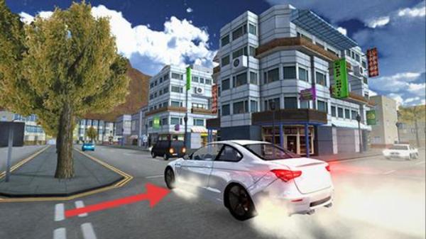 1、驾驶白色轿车时,按箭头方向操控车辆在城市道路行驶。