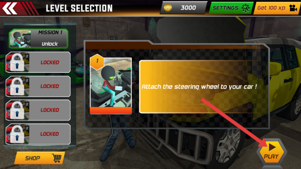 2、关卡选择界面,选择可解锁的任务(如Mission1),点击右下角黄色【PLAY】按钮,开始该关卡任务。