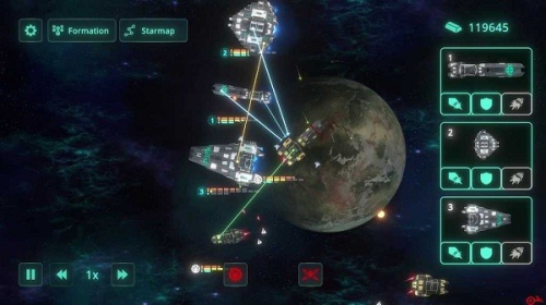 1、深度策略玩法,自由组建舰队,通过资源调配与战术布局掌控战局。