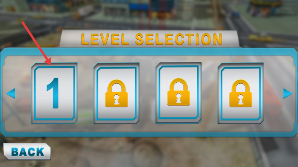 2、在【LEVELSELECTION】界面,选择解锁的【1】级关卡,进入关卡开始摩天大楼建设任务。