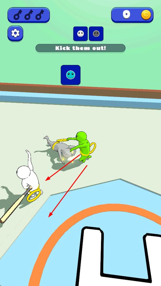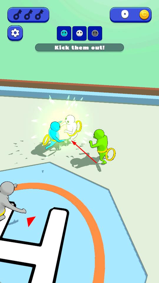 1、玩家操控彩色小人角色,与其他颜色的小人在场景中展开对抗,通过拳击、推搡等动作攻击对手。