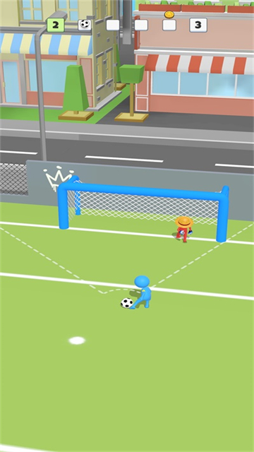 2、划线踢球操作直观易学,灵活绘制射门轨迹,既能模拟真实足球击球动作,也能通过背部、头部等部位触球,提升操作趣味。
