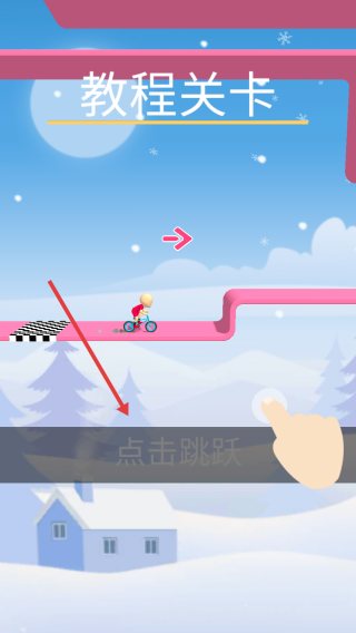 2、游戏中,依照提示点击“点击跳跃”区域,控制角色骑车跳跃通过障碍。