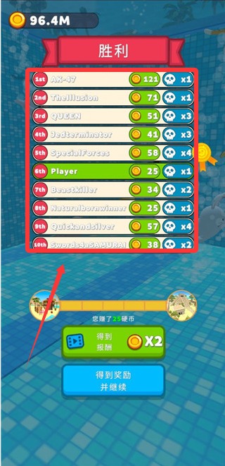 3、到达终点就可以看自己的排名,然后就可以获得相对应的奖励了。