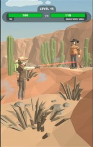 2、独创的决斗模式,采用真实拔枪速度判定机制。玩家需要通过练习提升反应速度,在0.3秒内完成拔枪射击动作才能取胜。