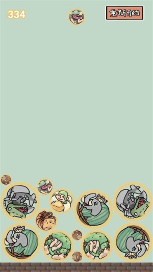 1、基础玩法,玩家通过点击屏幕控制小球下落,将相同种类的山海经生物移动到一起进行合并,逐步合成更高级别的生物。