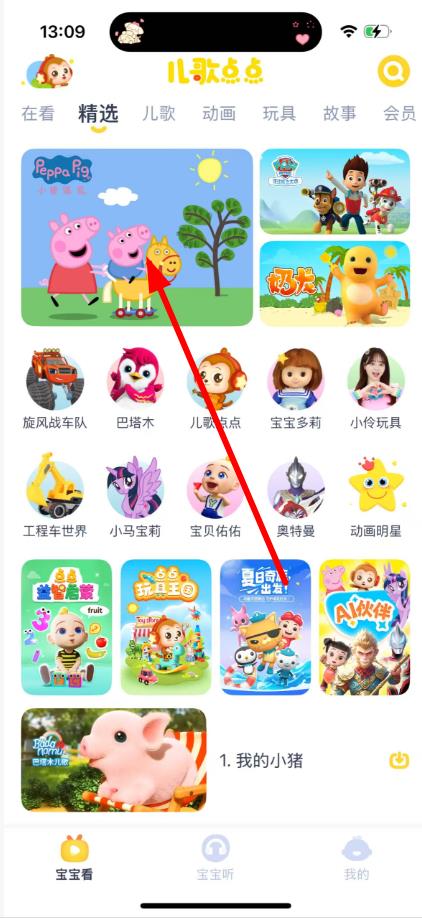 1、在【宝宝看】页面点击想要下载的动画片,如【小猪佩奇】。