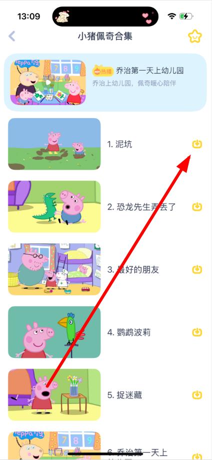 2、进入动画片合集页面后,点击视频右侧下载图标下载对应视频。