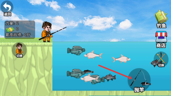 1、基础钓鱼操作:滑动屏幕调整抛竿力度与角度,长按屏息稳定鱼线,鱼咬钩时左右拖拽消耗其体力,成功钓起可获经验与金币。
