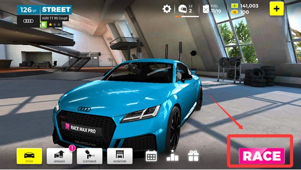 1、进入比赛前,可在车库中自由挑选车辆并进行性能调整,不同赛道需匹配不同类型的赛车才能发挥优势。