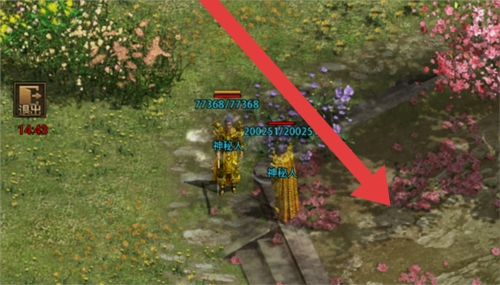 2、在野外场景遇“神秘人”,留意自身与对方血量,可尝试交互或战斗,探索场景中花草、河流等环境,寻找隐藏资源或任务。