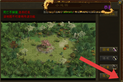 3、打开小地图,若需组队,点击箭头指向的【队伍】按钮,可创建/加入队伍,借助团队力量挑战更高难度内容,注意该地图不可传送。