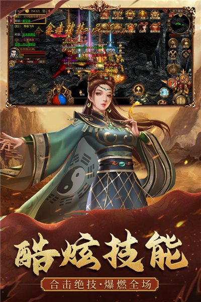 2、热血帮战玩法:开启万人同屏的特色帮战,参与皇城争夺,在激烈战斗中赢取荣誉与元宝红包等奖励,感受荣耀王者的成就感。