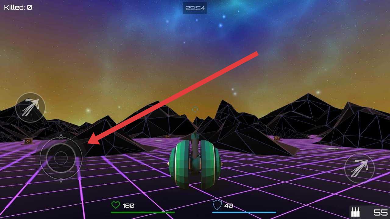 2、操控载具,按箭头指示,在不同场景(如星空山脉、绿色草地)移动,探索地图。