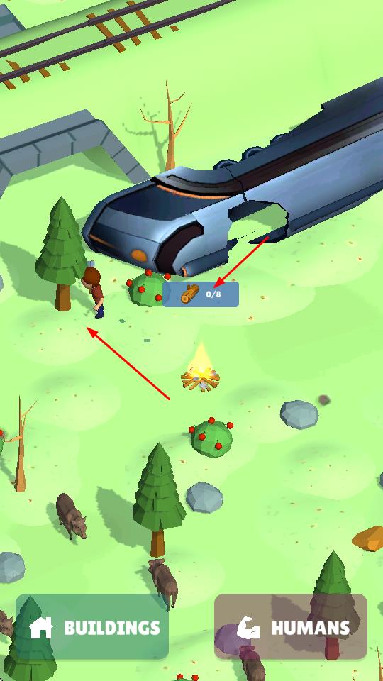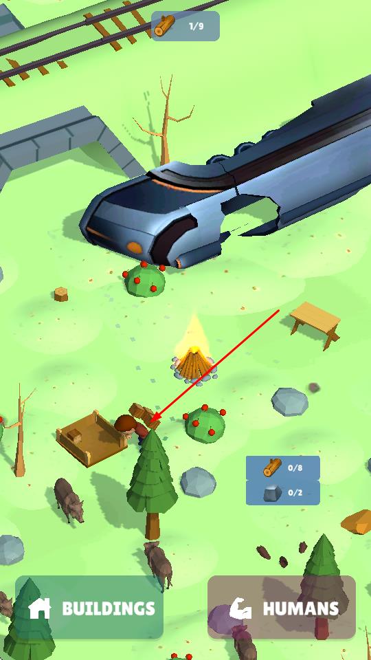 1、操控角色砍伐树木、采集石头等资源,满足建筑建造与升级需求,如通过砍树获取木材。