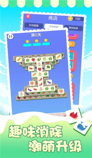3、游戏内置多种辅助道具,如提示卡、重排卡等,帮助玩家在关卡中取得优势,提高通关成功率。