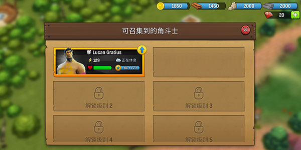 3、在【可召集到的角斗士】界面,优先解锁已达条件【解锁级别2】的角斗士,扩充阵容。