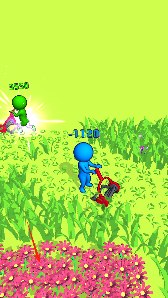 2、在收割过程中注意避让花朵,合理规划路线优先收割密集草丛,利用加速道具提升割草效率。