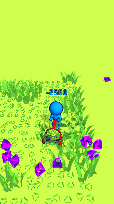 3、即时反馈机制:每收割一棵小草立即获得宝石反馈,搭配轻快音效与分数跳动,带来强烈的爽快感与成就感。
