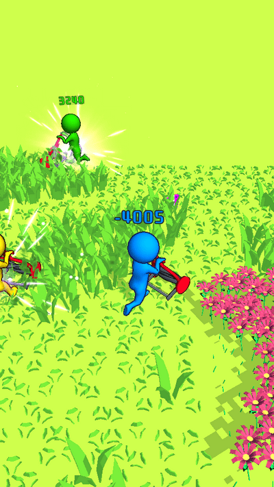 1、竞技割草玩法:实时在线匹配其他玩家,在同一场景中比拼割草速度与宝石收集量,紧张刺激的对抗充满趣味性。