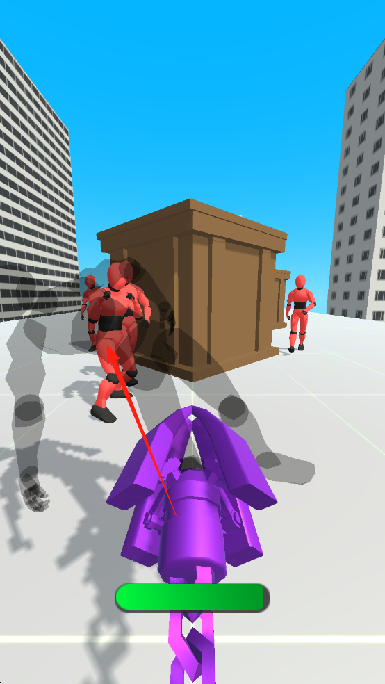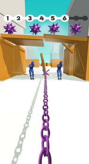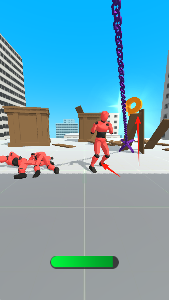 2、战斗推进操控紫色角色,在城市场景中,攻击红色敌人,利用场景道具(如链条、重物),按箭头指引,击败敌人,推进关卡。