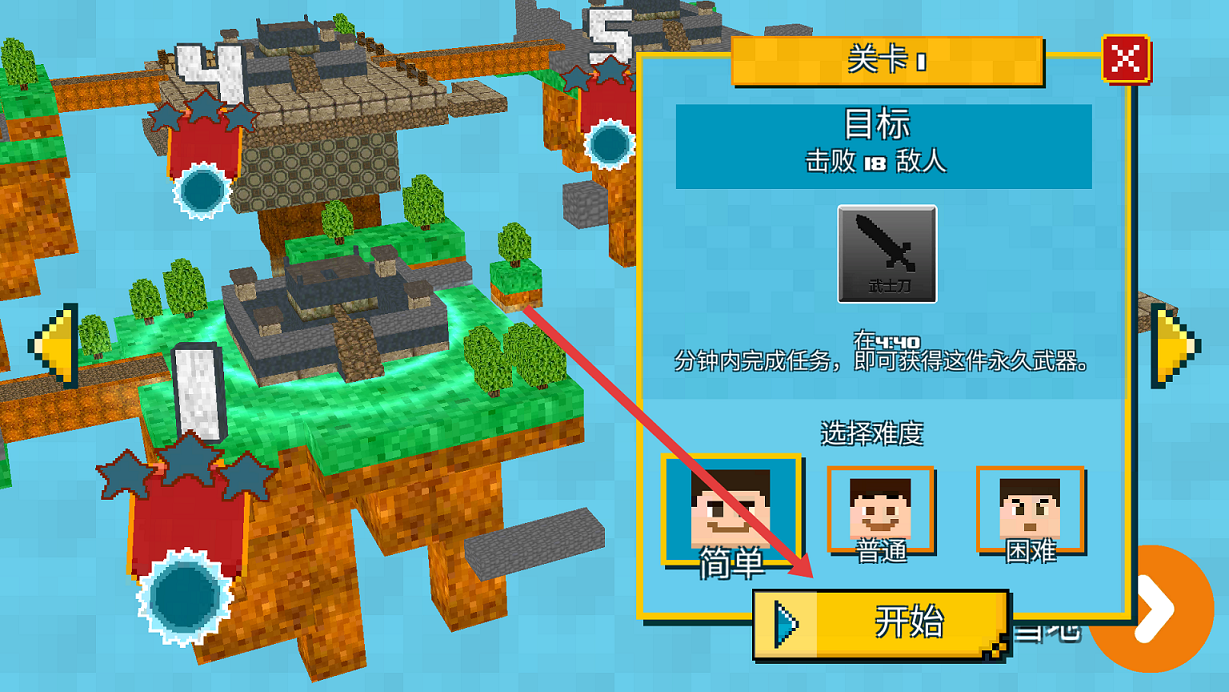2、点击关卡,选择难易度,记住任务目标,否则无法完成关卡。