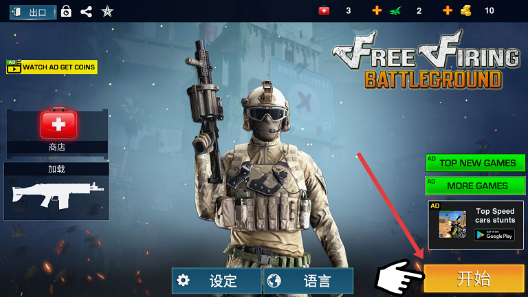 2、点击右下角的开始进入游戏,选择武器和关卡后即可上战场。