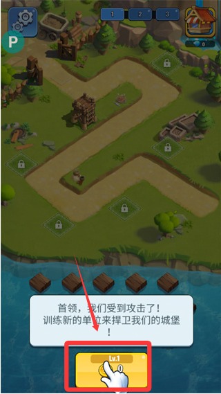 1、战斗中敌人沿着预定路线持续推进,玩家需利用战场两侧的塔楼位置,派遣士兵阻击敌人前进,确保基地安全。