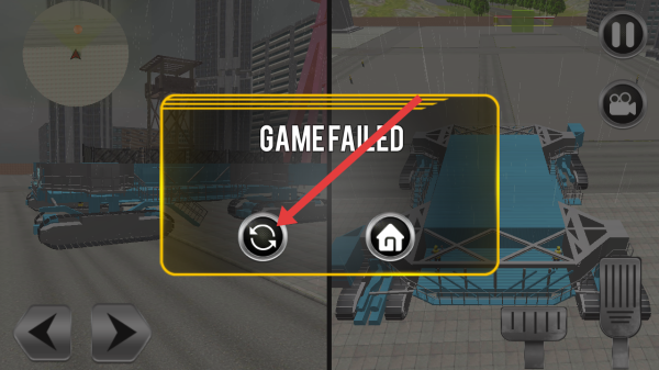 3、当该关卡没有完成系统指定任务时则失败,需要点击箭头指示的按键,重新完成这一关卡。
