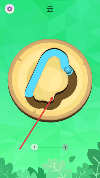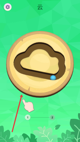 1、在“云”关卡,按箭头和手势提示,倾斜或滑动屏幕,控制蓝色小球沿云朵形状轨道滚动,完成路径。