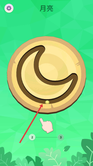 3、进入“月亮”关卡,依据箭头和手势指引,操控黄色小球沿月亮形轨道滚动,完成新挑战。