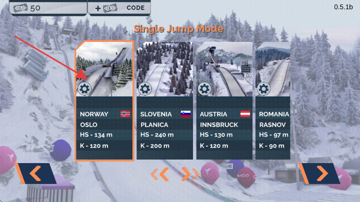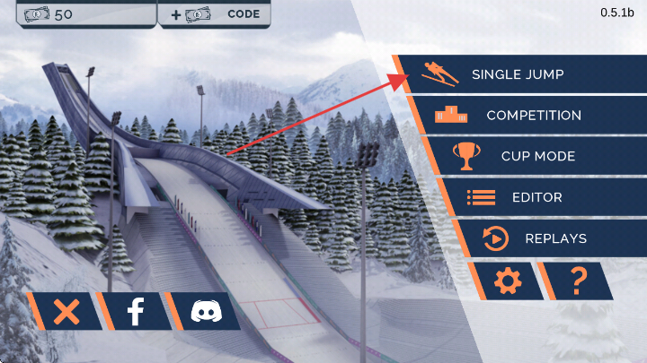 1、点击【SINGLE JUMP】选项,进入单人跳台滑雪模式。