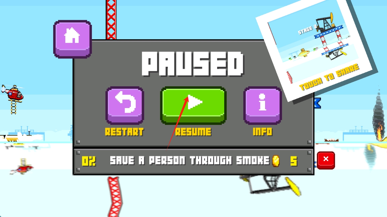 1、点击按钮开始游戏,通过零伤亡完成关卡获得额外奖励,利用连续完成高难度关卡触发"救援大师"状态,通过慢动作功能精准操作。