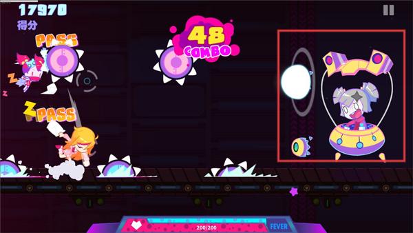 1、创新玩法融合设计:融合跑酷动作与音游核心玩法,通过点击操作应对敌人障碍,攻击节奏与音乐节拍同步带来沉浸体验。