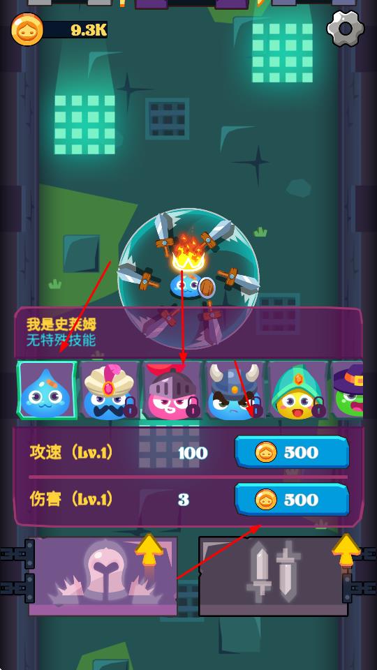 2、战斗获取金币,用于提升角色属性,比如攻击速度、伤害数值,还能解锁新角色,增强战斗能力,应对后续更强敌人。