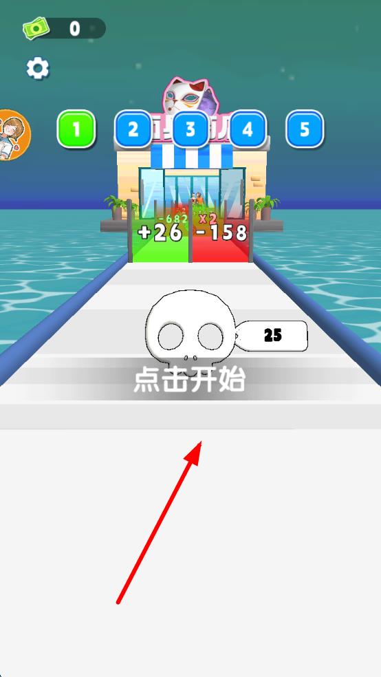 1、点击“点击开始”,操控面具在跑道起跑,通过左右滑动等操作,引导面具穿越不同道具门。