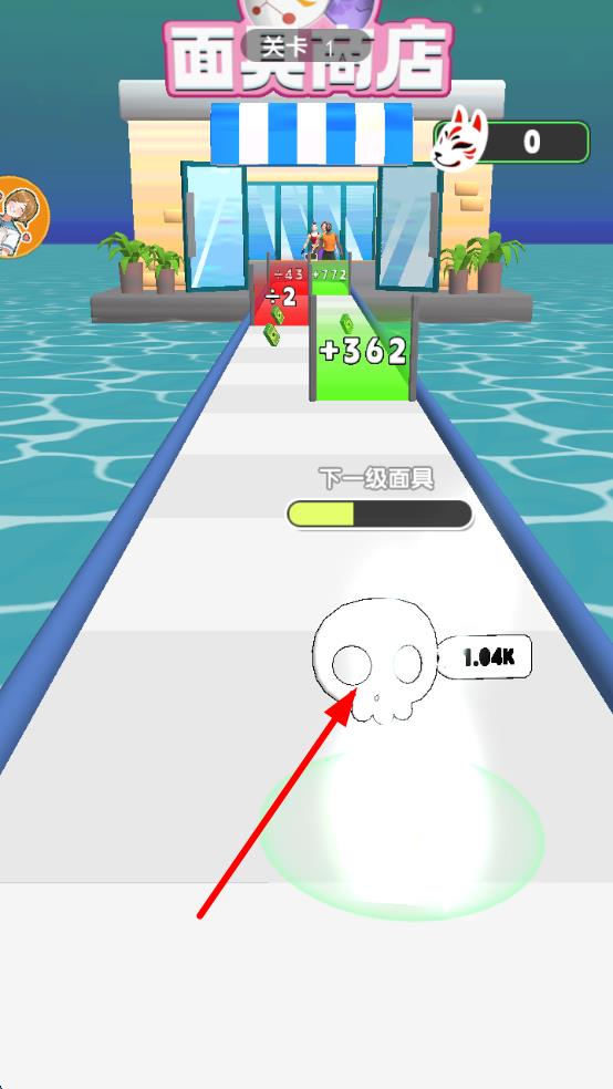 1、跑酷操作:利用滑动屏幕控制面具左右移动,精准穿越目标道具门,规划最优强化路线。