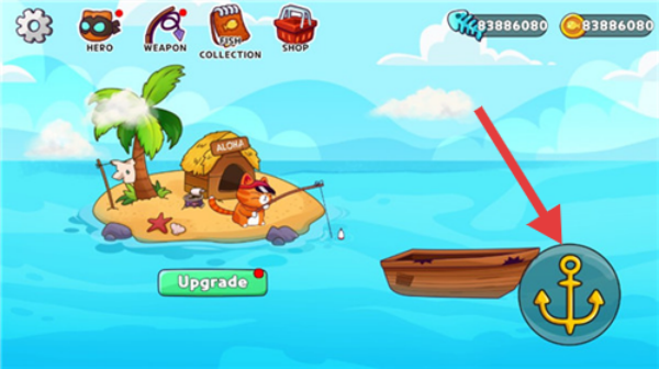1、在游戏主界面,点击锚形按钮,进入道具选择页面。