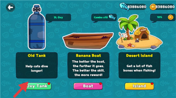 3、萌系猫咪养成系统:解锁“水手喵”“忍者喵”“公主喵”等10+猫咪皮肤,部分皮肤附带专属技能(如“诱饵喵”提升上钩速度,“雷达喵”显示鱼群位置),增添养成乐趣。