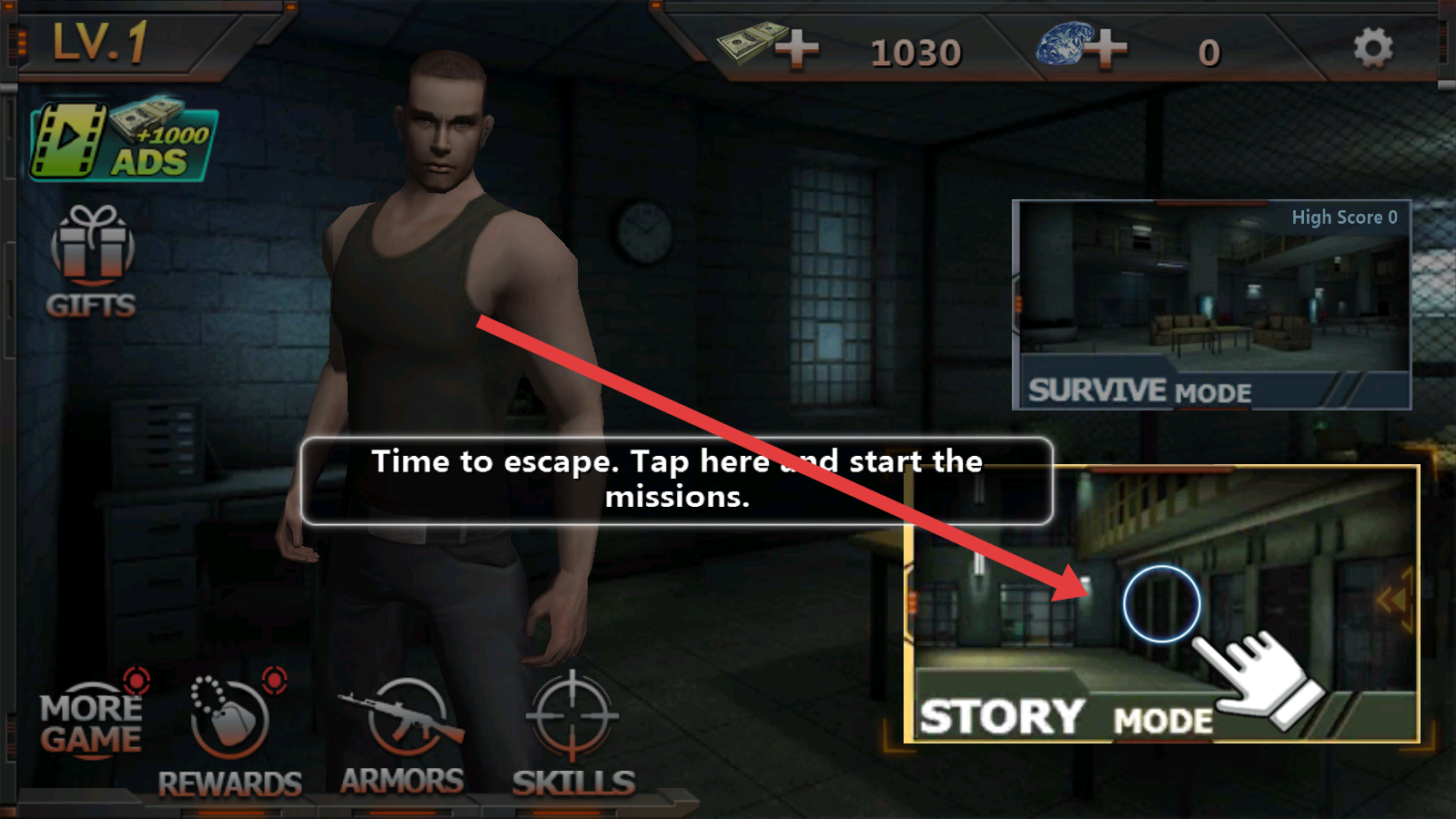 1、在主界面,按箭头指示,点击“STORY-MODE”(故事模式),开启剧情任务。