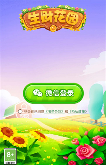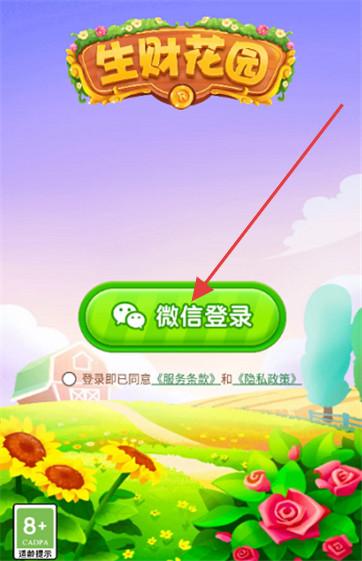 1、点击“微信登录”按钮,授权登录进入游戏,开启花园经营,进入花园开始种植。