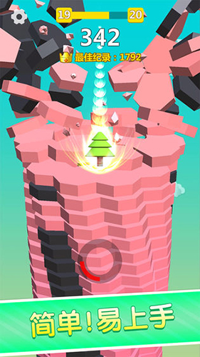 欢乐向下冲一款一键操控的休闲极速下滑手游,玩家长按屏幕让球体突破螺旋障碍堆,通过躲避黑色方块、维持连续冲刺触发火球特效,在速度递进与视觉冲击中挑战极限生存时长,感受单指操作带来的紧张刺激与爽快感,增强肾上腺素分泌。