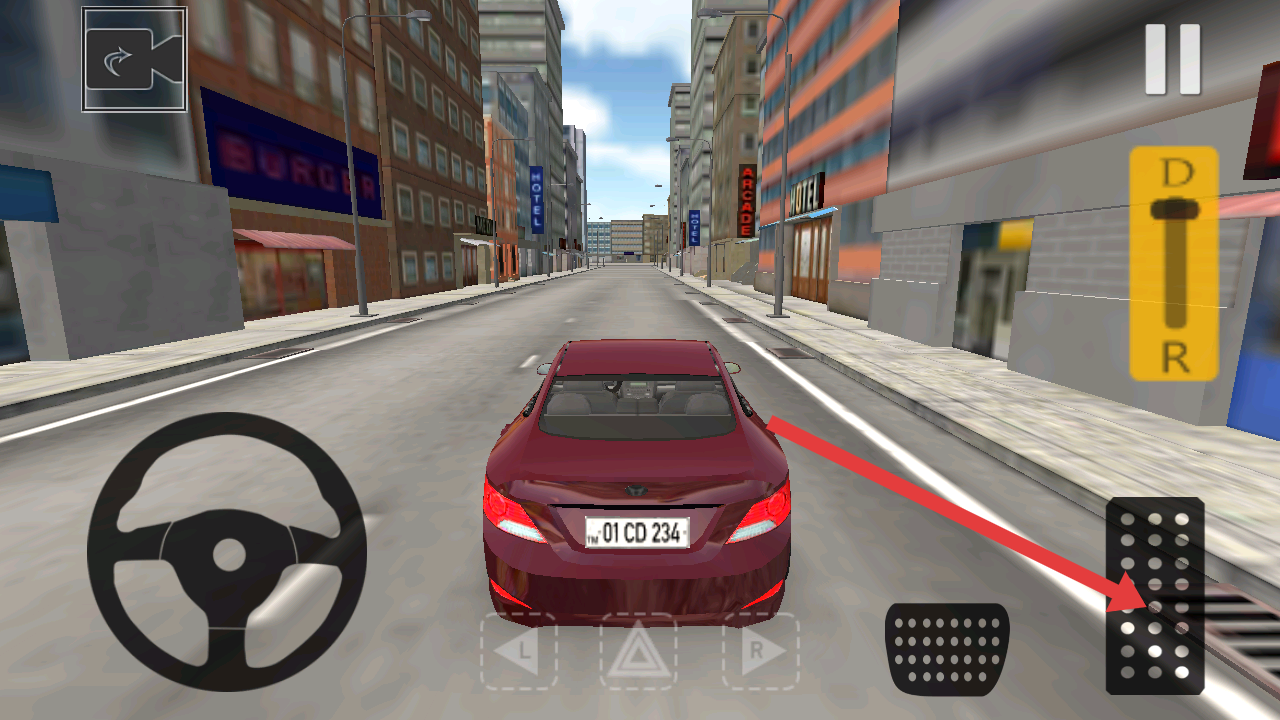 2、在驾驶自己的车辆时,可以点击屏幕右下角右侧油门踏板(箭头所指),控制车辆前进。