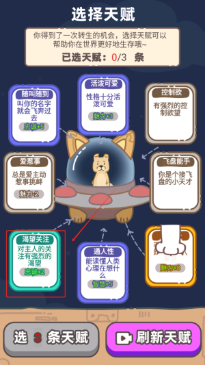1、选择初始犬种,根据品种特性制定培养计划。大型犬力量成长快,小型犬敏捷优势明显。天赋加点设计颇具深度。