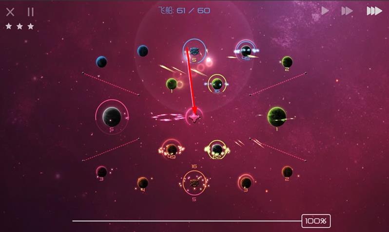 2、策略对战博弈:根据PVP或PVE模式特点,合理调配兵力,运用战术围剿敌人星球,或切断对手资源供应获取胜利。